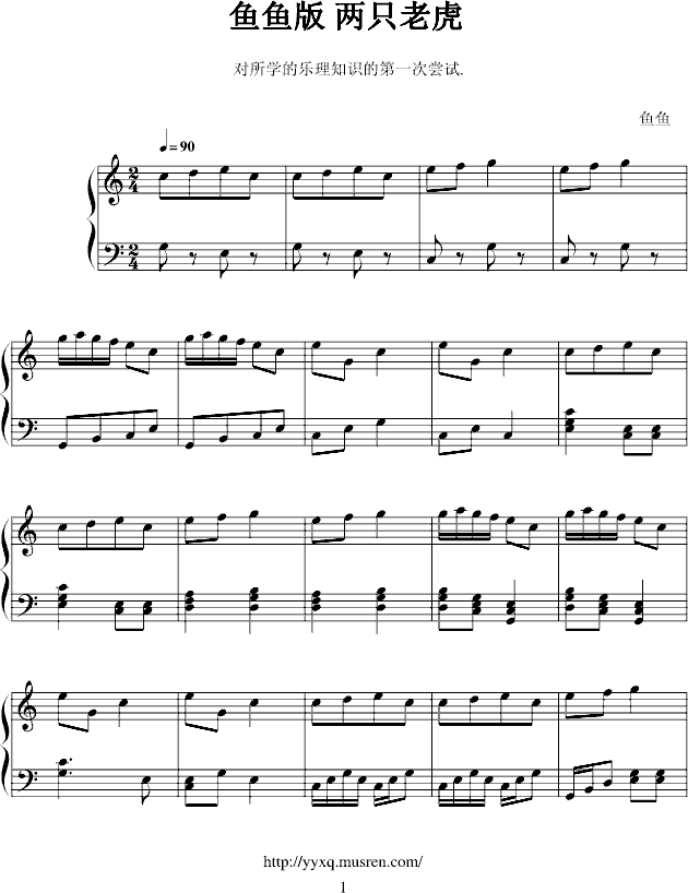 两只老虎 -鱼鱼版免费钢琴谱_五线谱:中国名曲 点击: 1000 图片可能经过缩放,手机长按或点开后长按保存,电脑鼠标右键保存.