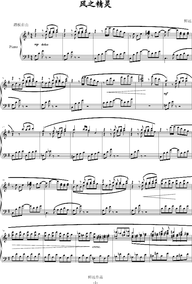 风之精灵-钢琴谱(钢琴曲)-乐侠免费钢琴谱_五线谱: 点击: 1000 图片可能经过缩放,手机长按或点开后长按保存,电脑鼠标右键保存.