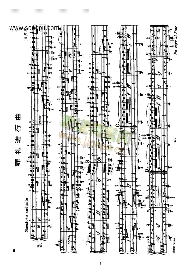 葬礼进行曲(四手联弹) 键盘类 钢琴免费钢琴谱_五线谱:贝多芬 点击: 1000 图片可能经过缩放,手机长按或点开后长按保存,电脑鼠标右键保存.