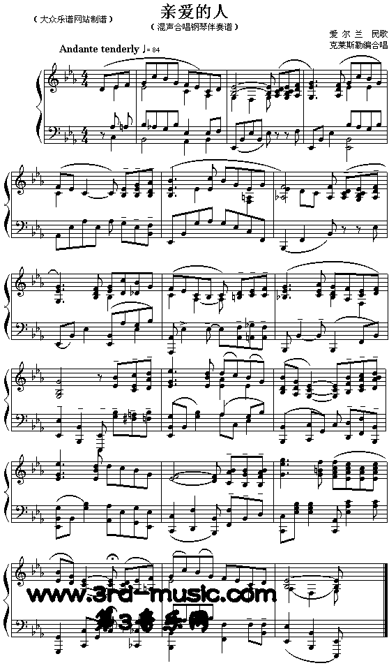 亲爱的人(爱尔兰民歌)[钢琴曲谱]免费钢琴谱_五线谱:未知 点击: 1000 图片可能经过缩放,手机长按或点开后长按保存,电脑鼠标右键保存.