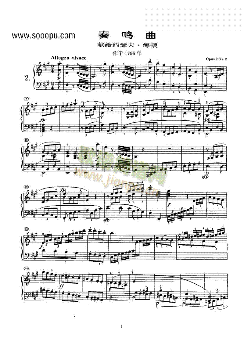 奏鸣曲(Opus2 Nr.2) 键盘类 钢琴免费钢琴谱_五线谱:贝多芬 点击: 1000 图片可能经过缩放,手机长按或点开后长按保存,电脑鼠标右键保存.
