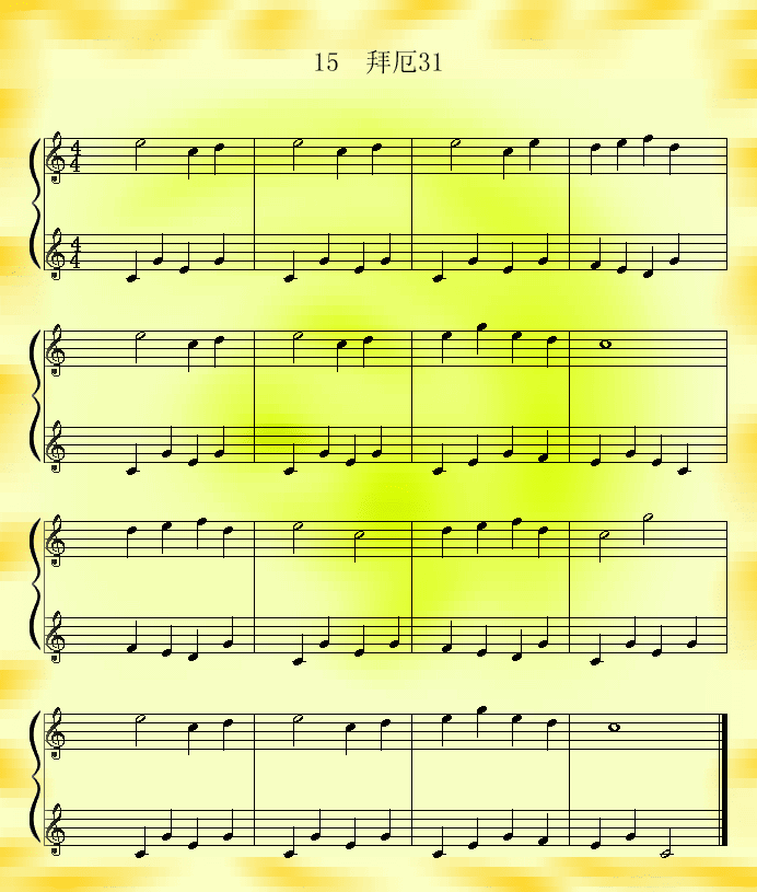 拜厄31免费钢琴谱_五线谱:未知 点击: 1000 图片可能经过缩放,手机长按或点开后长按保存,电脑鼠标右键保存.