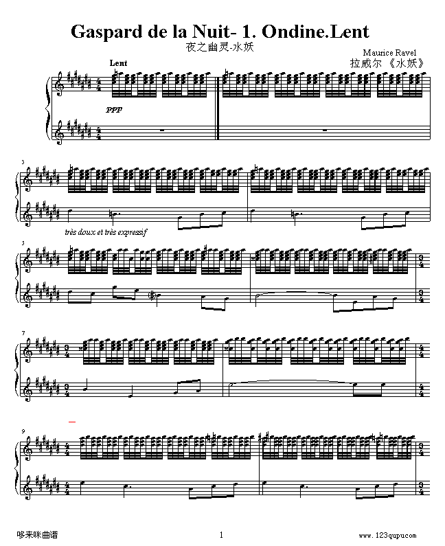 水妖(Gaspard de la Nuit- 1. Ondine.Lent)-拉威尔-Ravel免费钢琴谱_五线谱:未知 点击: 1000 图片可能经过缩放,手机长按或点开后长按保存,电脑鼠标右键保存.
