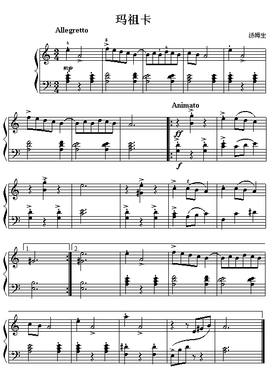 (美)汤姆生:玛祖卡免费钢琴谱_五线谱:未知 点击: 1000 图片可能经过缩放,手机长按或点开后长按保存,电脑鼠标右键保存.