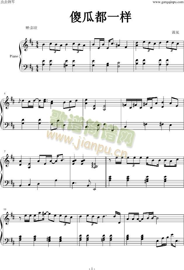 傻瓜都一样免费钢琴谱_五线谱: 点击: 1000 图片可能经过缩放,手机长按或点开后长按保存,电脑鼠标右键保存.