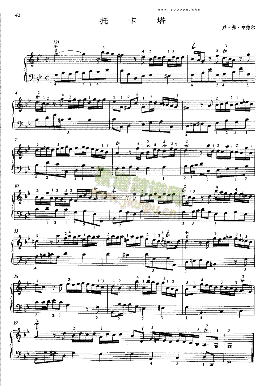 托卡塔 键盘类 钢琴免费钢琴谱_五线谱:乔.弗.亨德尔 点击: 1000 图片可能经过缩放,手机长按或点开后长按保存,电脑鼠标右键保存.