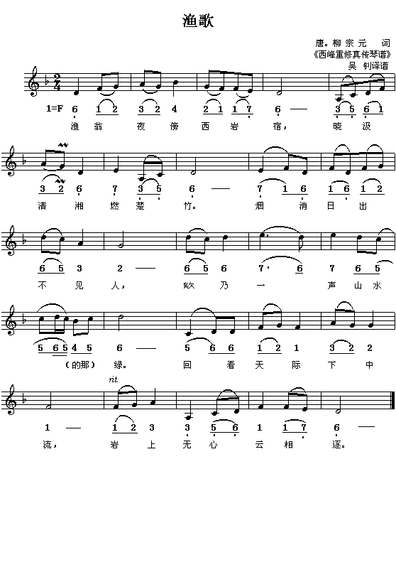 (唐)柳宗元:渔歌(配曲之一)(吴钊译谱 简线对照)免费钢琴谱_五线谱:未知 点击: 1000 图片可能经过缩放,手机长按或点开后长按保存,电脑鼠标右键保存.