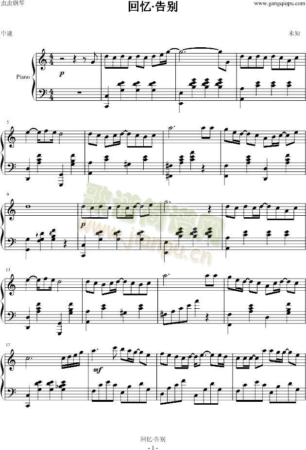 回忆告别免费钢琴谱_五线谱:中国名曲 点击: 1000 图片可能经过缩放,手机长按或点开后长按保存,电脑鼠标右键保存.