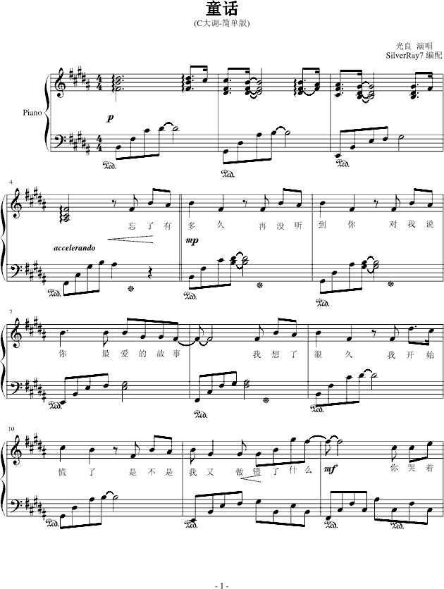 童话-B大调(简易版)免费钢琴谱_五线谱:光良 点击: 1000 图片可能经过缩放,手机长按或点开后长按保存,电脑鼠标右键保存.