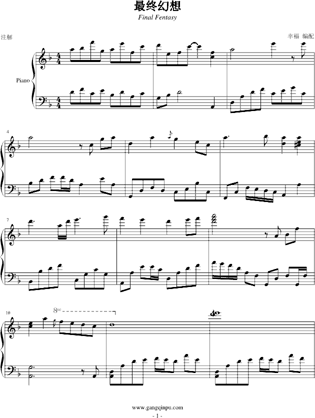 Final Fentasy-幸福版免费钢琴谱_五线谱:最终幻想 点击: 1000 图片可能经过缩放,手机长按或点开后长按保存,电脑鼠标右键保存.
