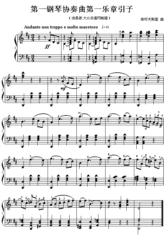柴可夫斯基:第一钢琴协奏曲第一乐章引子乐段免费钢琴谱_五线谱:未知 点击: 1000 图片可能经过缩放,手机长按或点开后长按保存,电脑鼠标右键保存.