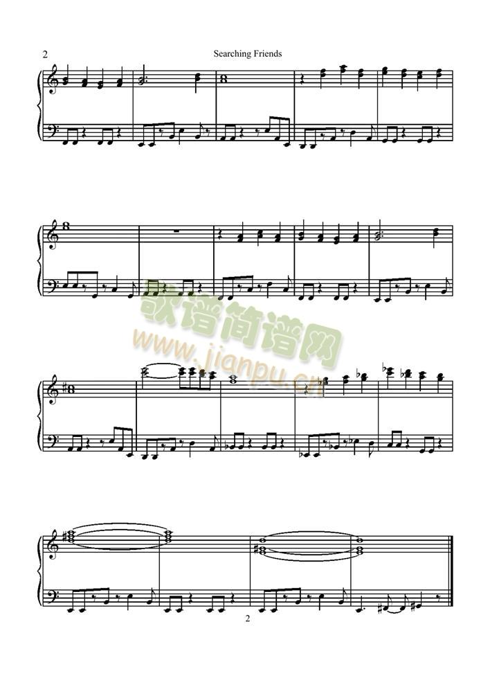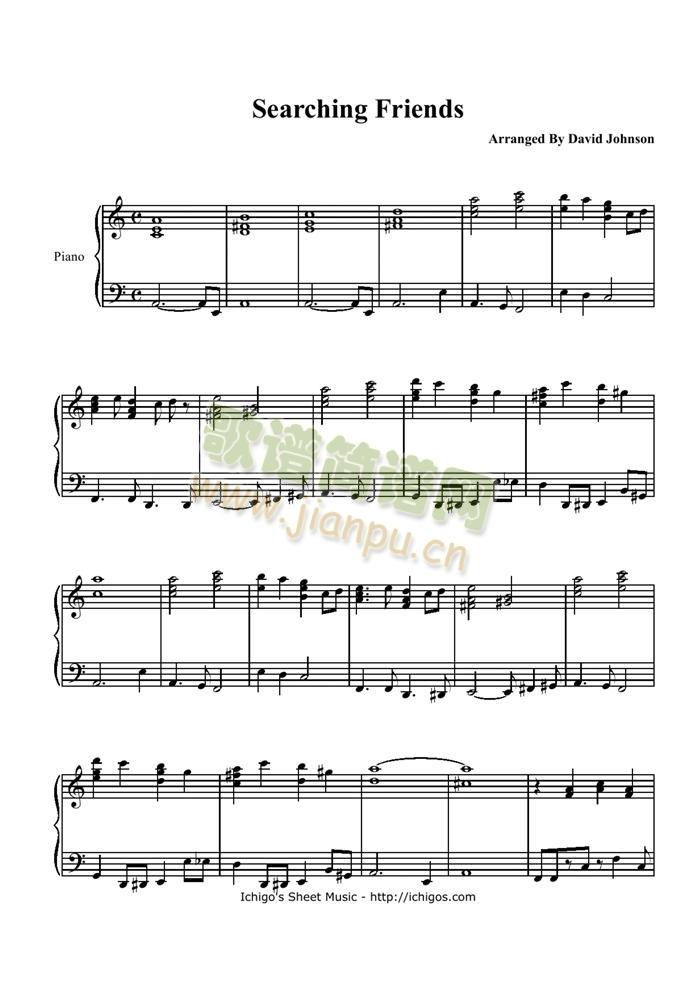 Searching Friends免费钢琴谱_五线谱: 点击: 1000 图片可能经过缩放,手机长按或点开后长按保存,电脑鼠标右键保存.