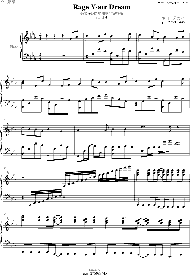 Rage Your Dream 头文字D结尾钢琴完整版动画片-钢琴谱(钢琴曲)-影视免费钢琴谱_五线谱: 点击: 1000 图片可能经过缩放,手机长按或点开后长按保存,电脑鼠标右键保存.