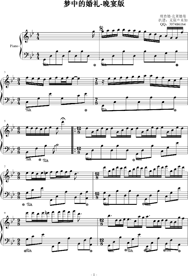 梦中的婚礼晚宴版-钢琴谱(钢琴曲)-克莱德曼免费钢琴谱_五线谱: 点击: 1000 图片可能经过缩放,手机长按或点开后长按保存,电脑鼠标右键保存.