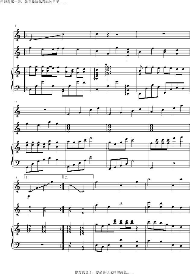 陪你看海免费钢琴谱_五线谱/词曲:血腥残阳血腥残阳点击: 1000 图片可能经过缩放,手机长按或点开后长按保存,电脑鼠标右键保存.