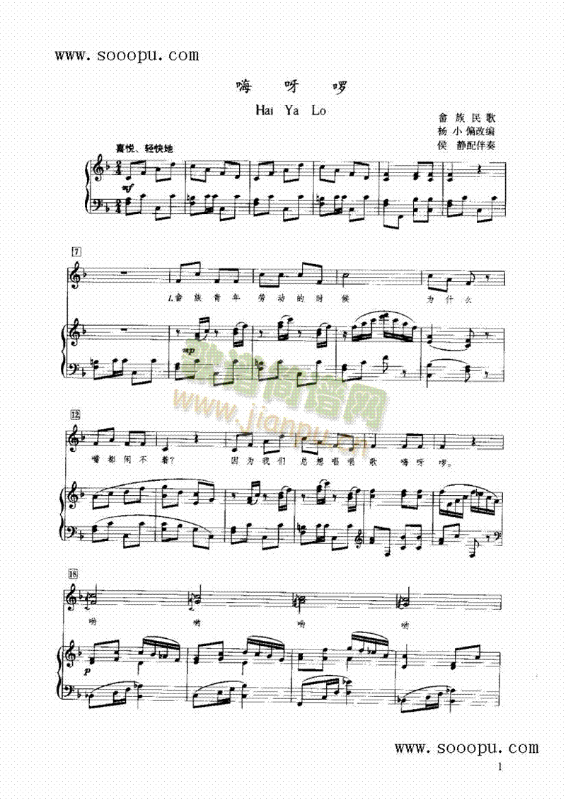 嗨呀啰 键盘类 钢琴免费钢琴谱_五线谱:民歌 点击: 1000 图片可能经过缩放,手机长按或点开后长按保存,电脑鼠标右键保存.