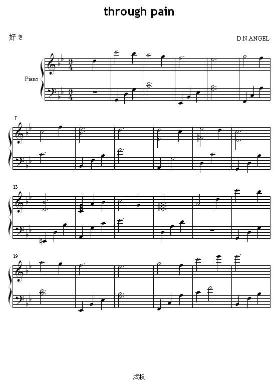 through pain -天使怪盗免费钢琴谱_五线谱:动漫影视 点击: 1000 图片可能经过缩放,手机长按或点开后长按保存,电脑鼠标右键保存.