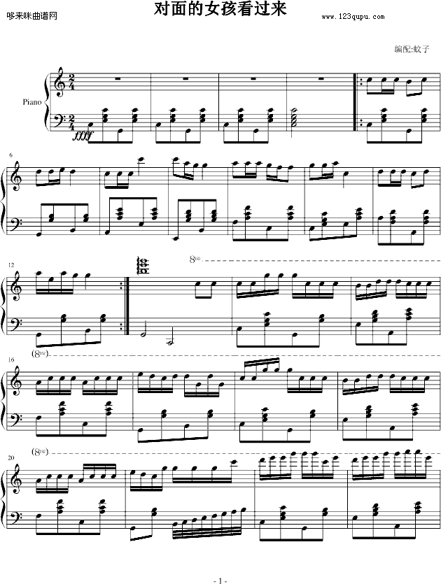 对面的女孩看过来-蚊子版-任贤齐免费钢琴谱_五线谱:未知 点击: 1000 图片可能经过缩放,手机长按或点开后长按保存,电脑鼠标右键保存.