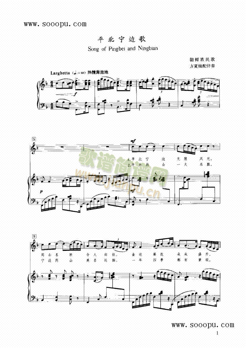 平北宁边歌 键盘类 钢琴免费钢琴谱_五线谱:民歌 点击: 1000 图片可能经过缩放,手机长按或点开后长按保存,电脑鼠标右键保存.