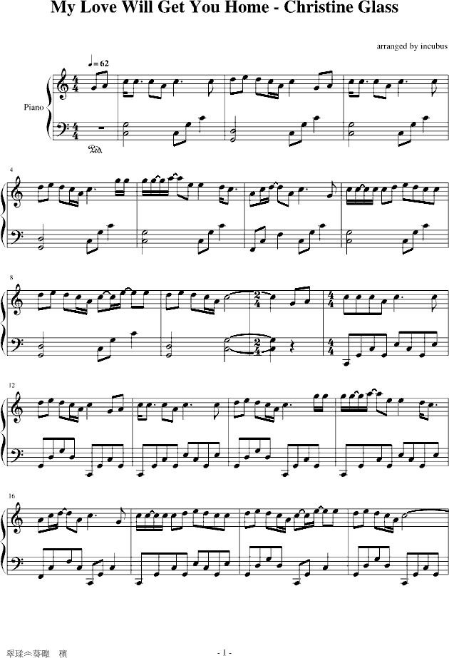 My love will get you home-钢琴谱(钢琴曲)-克里丝汀娜-Christine Glass免费钢琴谱_五线谱: 点击: 1000 图片可能经过缩放,手机长按或点开后长按保存,电脑鼠标右键保存.