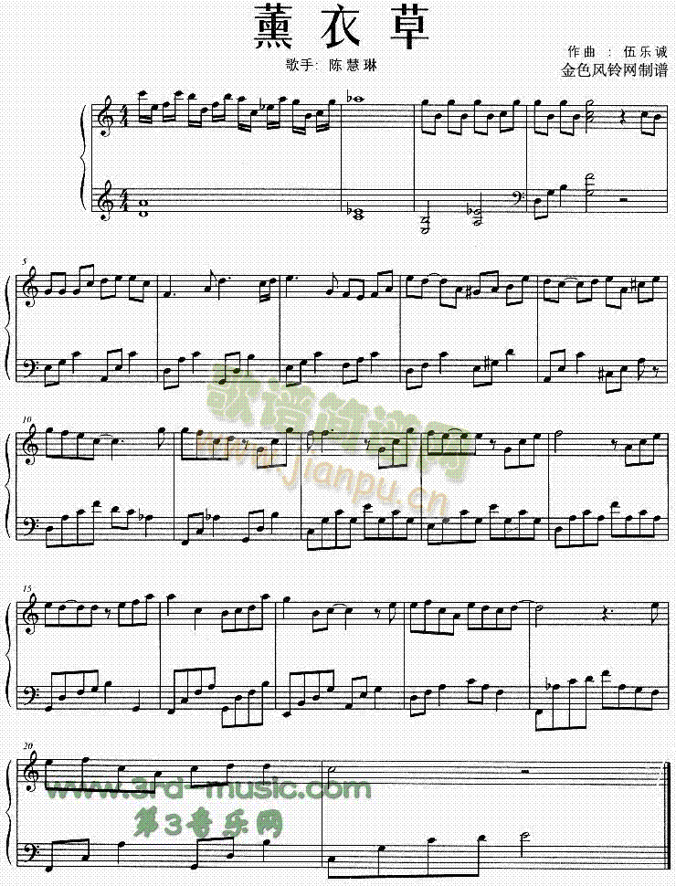 薰衣草[钢琴曲谱]免费钢琴谱_五线谱:未知 点击: 1000 图片可能经过缩放,手机长按或点开后长按保存,电脑鼠标右键保存.