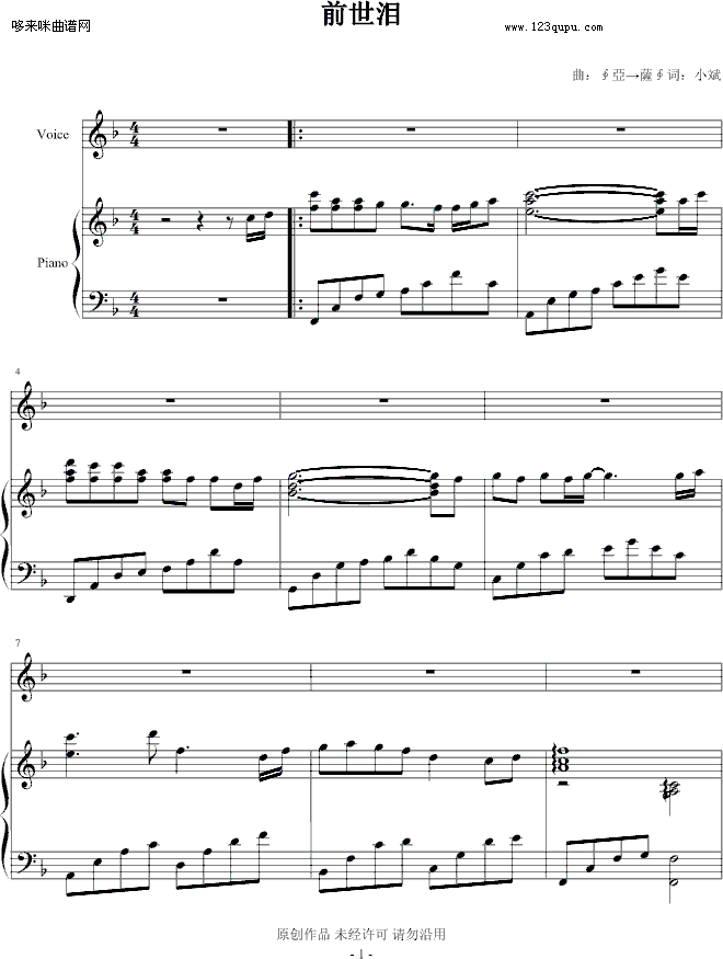 前世泪-∮亞→薩∮免费钢琴谱_五线谱:未知 点击: 1000 图片可能经过缩放,手机长按或点开后长按保存,电脑鼠标右键保存.
