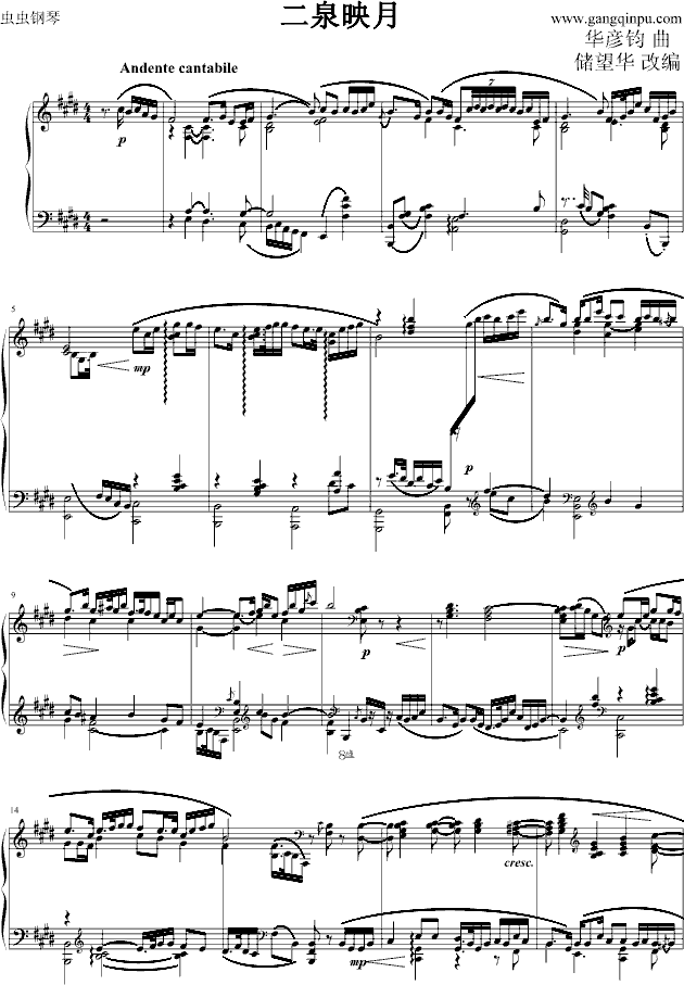 二泉映月(储望华改编)-钢琴谱(钢琴曲)-中国名曲免费钢琴谱_五线谱: 点击: 1000 图片可能经过缩放,手机长按或点开后长按保存,电脑鼠标右键保存.