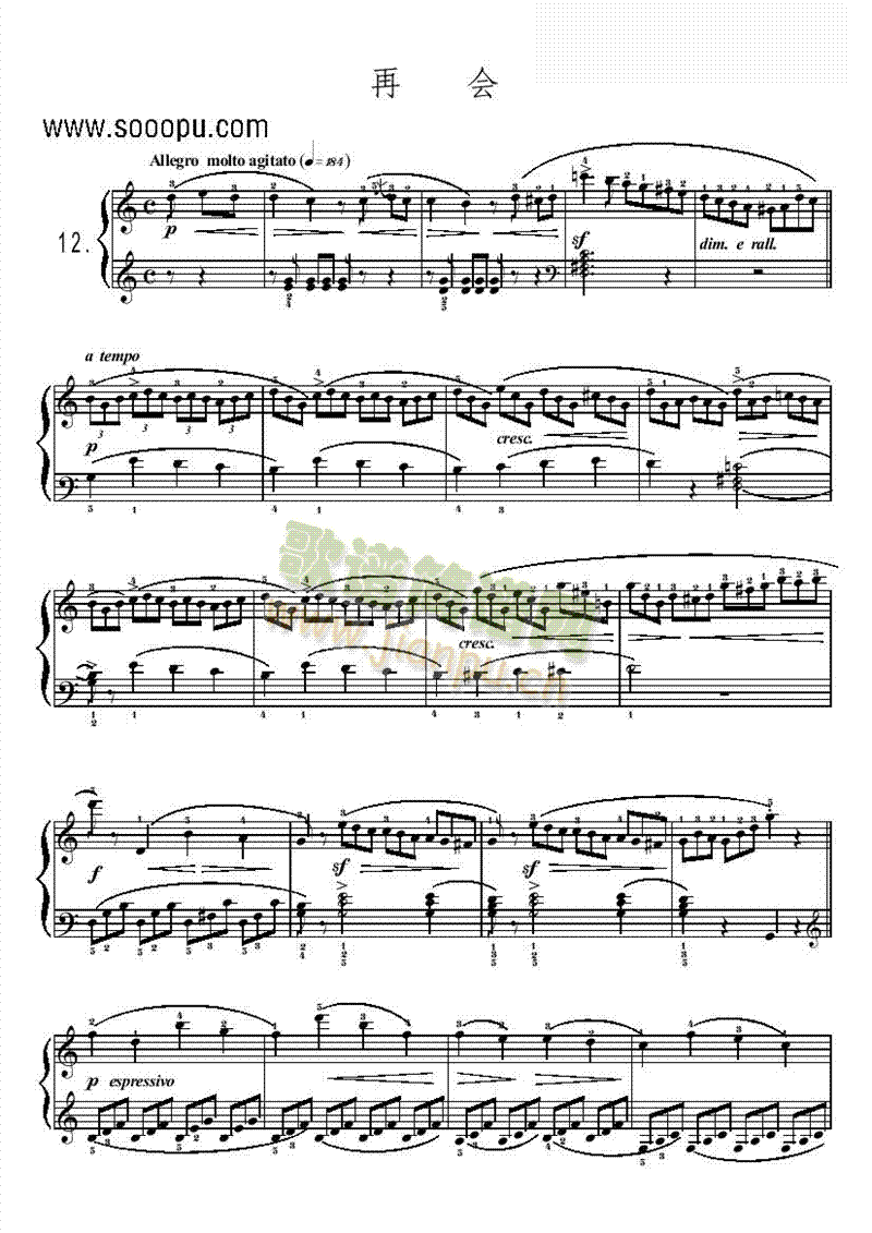 再会 键盘类 钢琴免费钢琴谱_五线谱:布格谬勒 点击: 1000 图片可能经过缩放,手机长按或点开后长按保存,电脑鼠标右键保存.