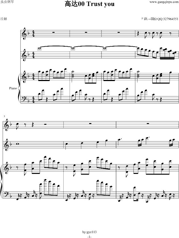 高达00 Trust you-钢琴谱(钢琴曲)-动漫影视免费钢琴谱_五线谱: 点击: 1000 图片可能经过缩放,手机长按或点开后长按保存,电脑鼠标右键保存.