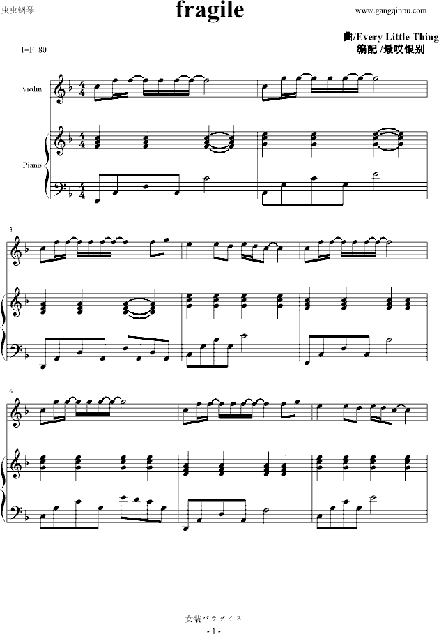 fragile——小事乐团-钢琴谱(钢琴曲)-Every Little Thing免费钢琴谱_五线谱: 点击: 1000 图片可能经过缩放,手机长按或点开后长按保存,电脑鼠标右键保存.