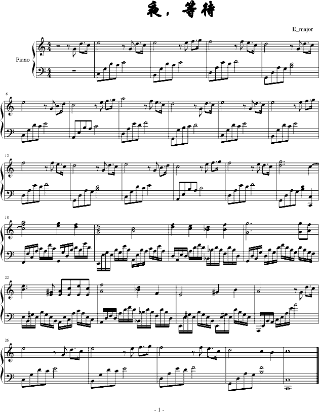 夜,等待-钢琴谱(钢琴曲)-E大调的天空免费钢琴谱_五线谱: 点击: 1000 图片可能经过缩放,手机长按或点开后长按保存,电脑鼠标右键保存.