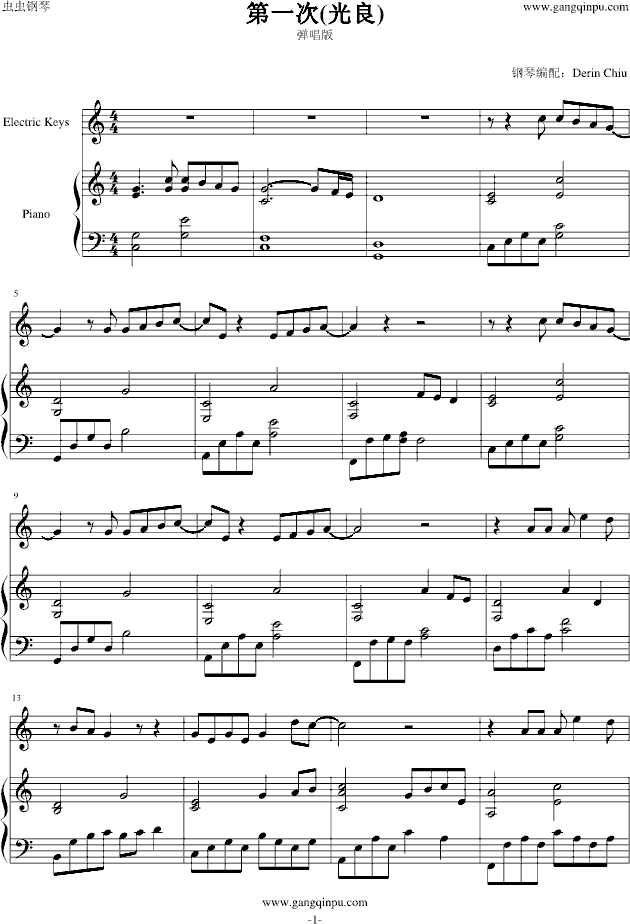 第一次(弹唱版)-钢琴谱(钢琴曲)-光良免费钢琴谱_五线谱: 点击: 1000 图片可能经过缩放,手机长按或点开后长按保存,电脑鼠标右键保存.