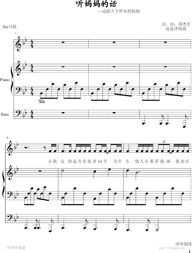 听妈妈的话-弹唱-试听版-周杰伦免费钢琴谱_五线谱:未知 点击: 1000 图片可能经过缩放,手机长按或点开后长按保存,电脑鼠标右键保存.