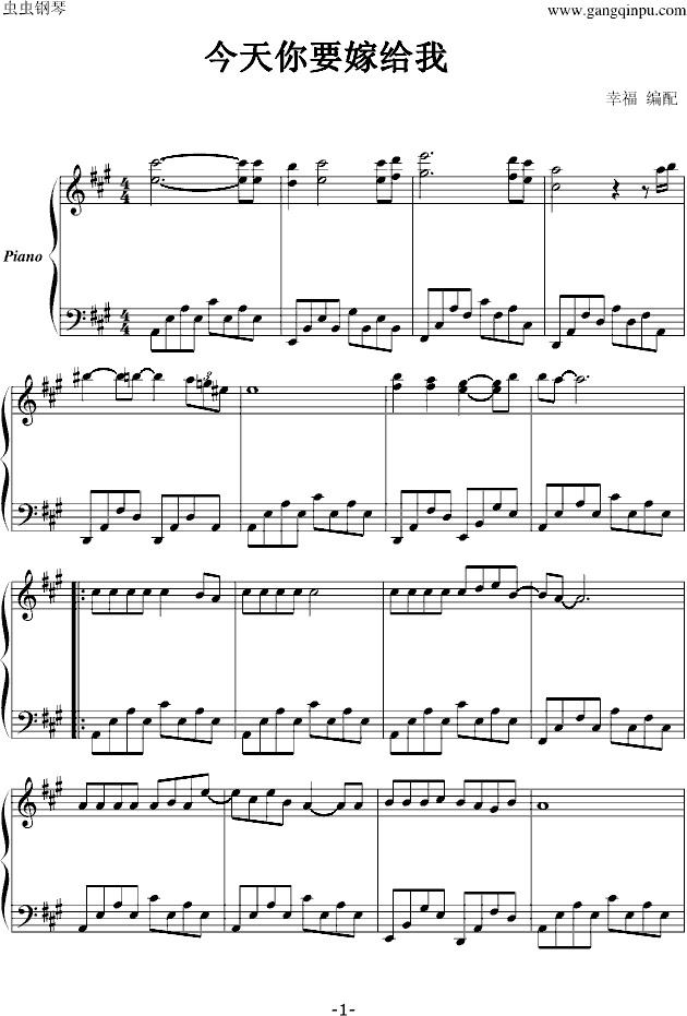 今天你要嫁给我免费钢琴谱_五线谱:蔡依林陶喆 点击: 1000 图片可能经过缩放,手机长按或点开后长按保存,电脑鼠标右键保存.