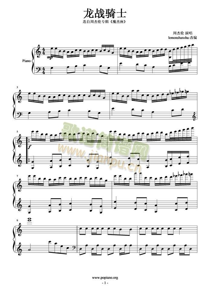 龙骑战士免费钢琴谱_五线谱:周杰伦 点击: 1000 图片可能经过缩放,手机长按或点开后长按保存,电脑鼠标右键保存.