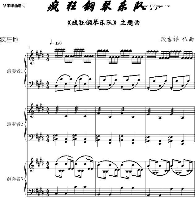 疯 狂 钢 琴 乐 队-凤师少爷免费钢琴谱_五线谱:未知 点击: 1000 图片可能经过缩放,手机长按或点开后长按保存,电脑鼠标右键保存.