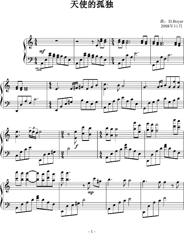 天使的孤独-钢琴谱(钢琴曲)-DB免费钢琴谱_五线谱: 点击: 1000 图片可能经过缩放,手机长按或点开后长按保存,电脑鼠标右键保存.