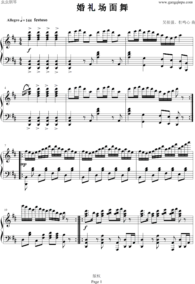 婚礼场面舞-欧阳阳制谱版免费钢琴谱_五线谱:世界名曲 点击: 1000 图片可能经过缩放,手机长按或点开后长按保存,电脑鼠标右键保存.