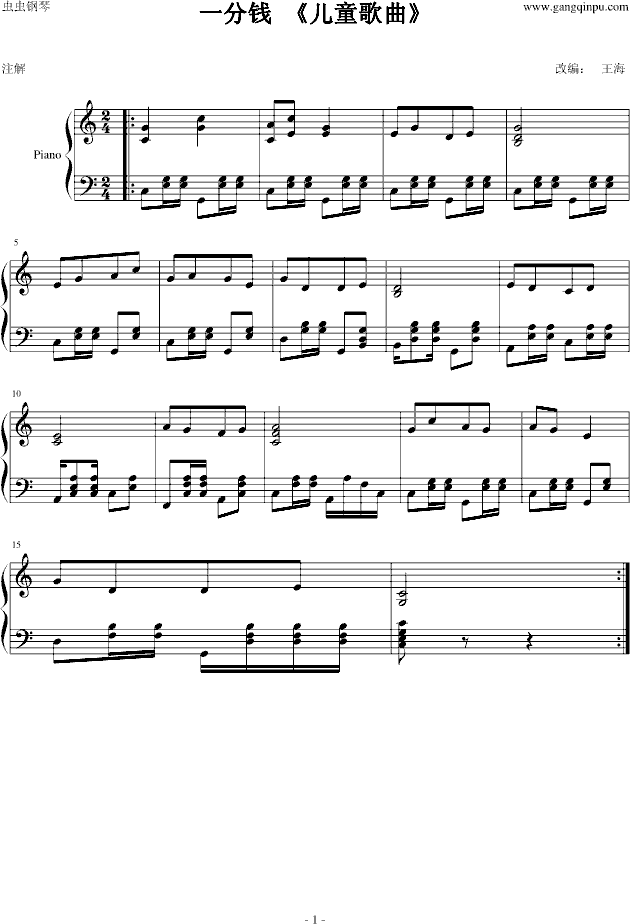 一分钱-钢琴谱(钢琴曲)-儿童歌曲免费钢琴谱_五线谱: 点击: 1000 图片可能经过缩放,手机长按或点开后长按保存,电脑鼠标右键保存.