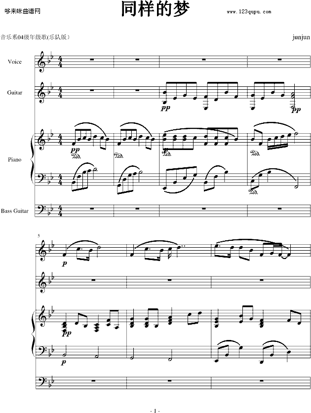 同样的梦 (乐队版)-俊俊免费钢琴谱_五线谱:未知 点击: 1000 图片可能经过缩放,手机长按或点开后长按保存,电脑鼠标右键保存.
