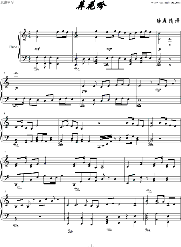 葬花吟-红楼梦免费钢琴谱_五线谱:影视 点击: 1000 图片可能经过缩放,手机长按或点开后长按保存,电脑鼠标右键保存.