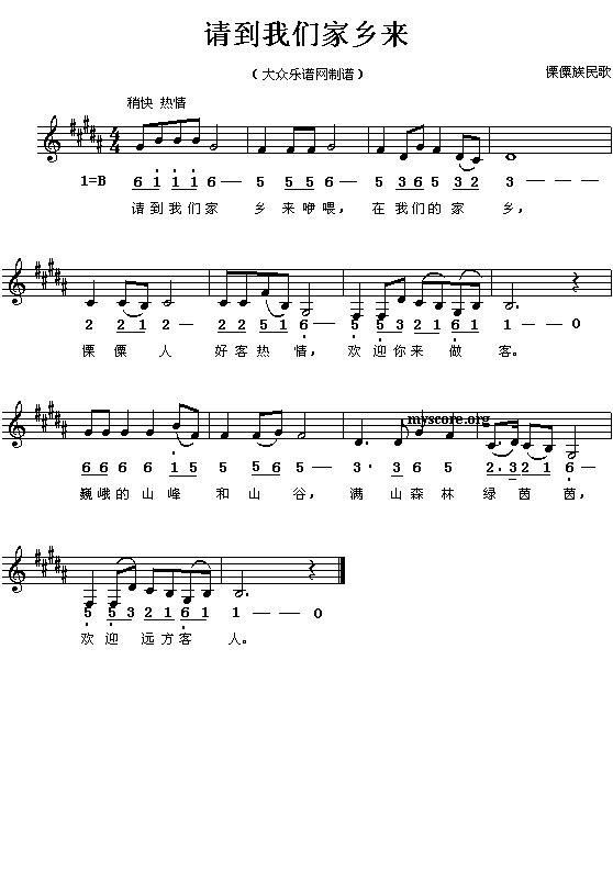 傈僳族民歌:请到我们家乡来(简线对照)免费钢琴谱_五线谱:未知 点击: 1000 图片可能经过缩放,手机长按或点开后长按保存,电脑鼠标右键保存.