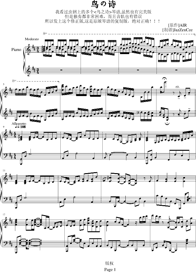 鸟之诗-独奏爵士修正版-钢琴谱(钢琴曲)-动漫影视免费钢琴谱_五线谱: 点击: 1000 图片可能经过缩放,手机长按或点开后长按保存,电脑鼠标右键保存.