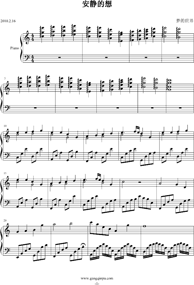 安静的想-钢琴谱(钢琴曲)-梦的世界免费钢琴谱_五线谱: 点击: 1000 图片可能经过缩放,手机长按或点开后长按保存,电脑鼠标右键保存.