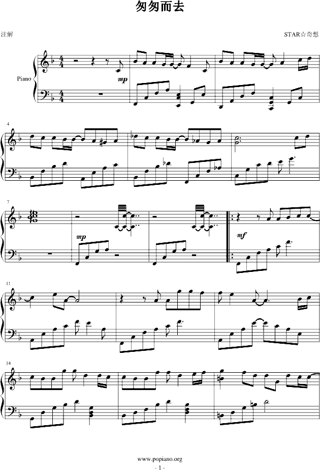 匆匆而去免费钢琴谱_五线谱:琴☆归宿 点击: 1000 图片可能经过缩放,手机长按或点开后长按保存,电脑鼠标右键保存.