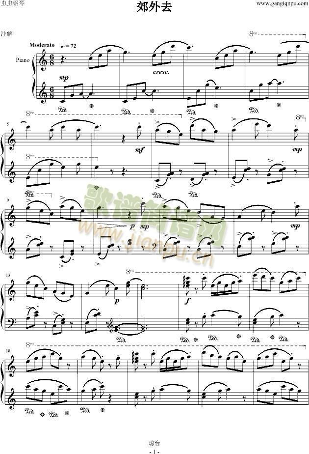 郊外去免费钢琴谱_五线谱: 点击: 1000 图片可能经过缩放,手机长按或点开后长按保存,电脑鼠标右键保存.