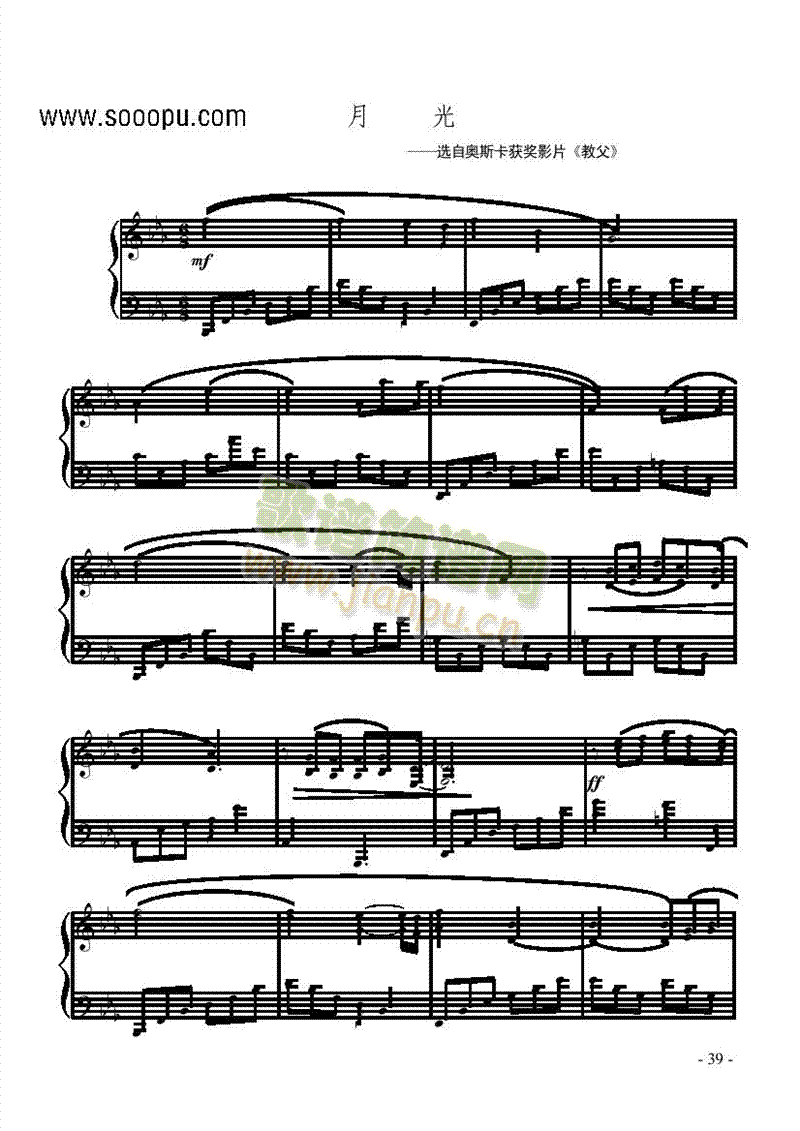 月光 键盘类 钢琴免费钢琴谱_五线谱:电影《教父》 点击: 1000 图片可能经过缩放,手机长按或点开后长按保存,电脑鼠标右键保存.