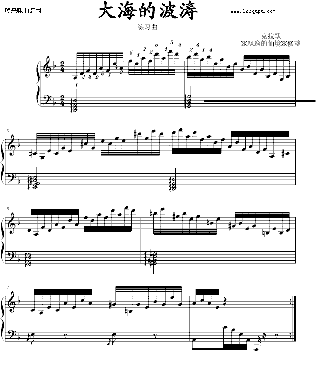 练习曲-大海的波涛-克拉莫免费钢琴谱_五线谱:未知 点击: 1000 图片可能经过缩放,手机长按或点开后长按保存,电脑鼠标右键保存.
