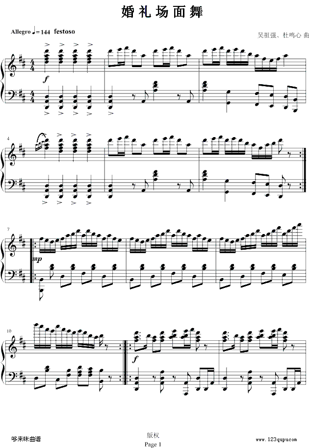 婚礼场面舞-欧阳阳制谱版-世界名曲免费钢琴谱_五线谱:未知 点击: 1000 图片可能经过缩放,手机长按或点开后长按保存,电脑鼠标右键保存.