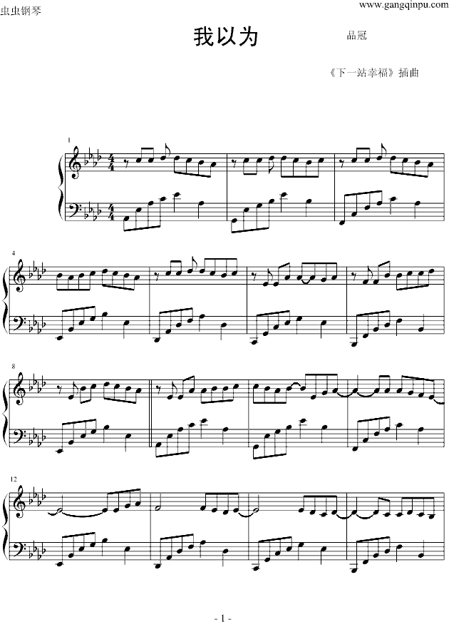 我以为-钢琴谱(钢琴曲)-品冠免费钢琴谱_五线谱: 点击: 1000 图片可能经过缩放,手机长按或点开后长按保存,电脑鼠标右键保存.